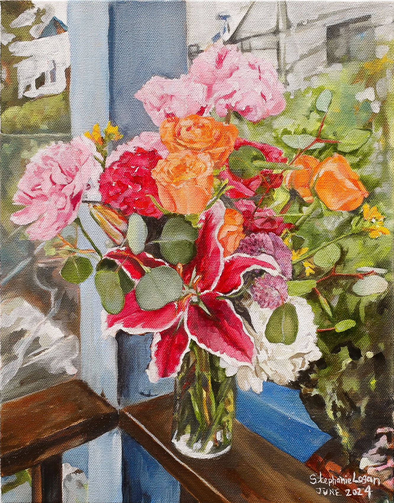 Lily, peony, rose and freesia on balcony